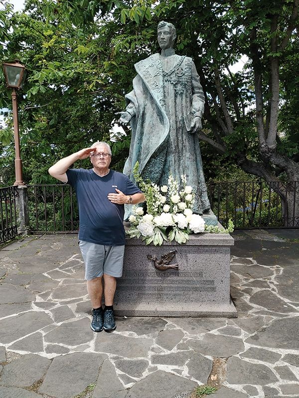 Schluderns/Madeira - „Ein Tiroler am Grab von Kaiser Karl in Madeira“. Diese Botschaft samt Foto erreichte am Herzjesusonntag den Vinschgau. Josef Trafoier, der eingefleischter Schludernser Schütze, ließ es sich am Tiroler Feiertag nicht nehmen, vor der Büste des letzten Habsburger-Kaisers mit Herz und Hand zu salutieren. Kaiser Karl verbrachte seine letzten Lebensjahre mit seiner Familie im ärmlichen Verhältnissen auf Madeira im Exil, wo er 1922 starb. (mds)