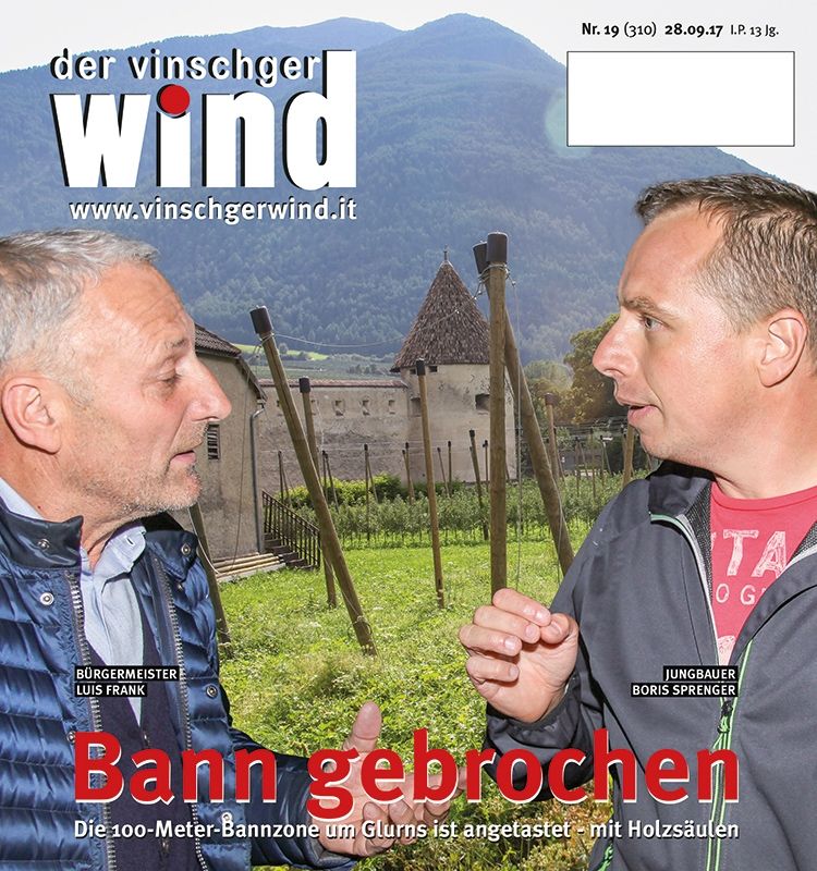 Glurns - BM Luis Frank hätte sich das kürzlich abgebrannte mediale Spektakel sparen können, in dem davon die Rede war, dass die Causa Apfelwiese vor der Stadtmauer nun doch vor dem Verwaltungsgericht verhandelt werden soll. Es geht um die Wiese neben dem Malser Tor, die vor allem dadurch für Furor gesorgt hat, weil eine Apfelanlage mit Holzpfählen als Stützgerüst errichtet worden war. Im Beschluss der Landesregierung, welcher in einer Bannzone von 100 Metern Betonsäulen verboten hatte, war kein…