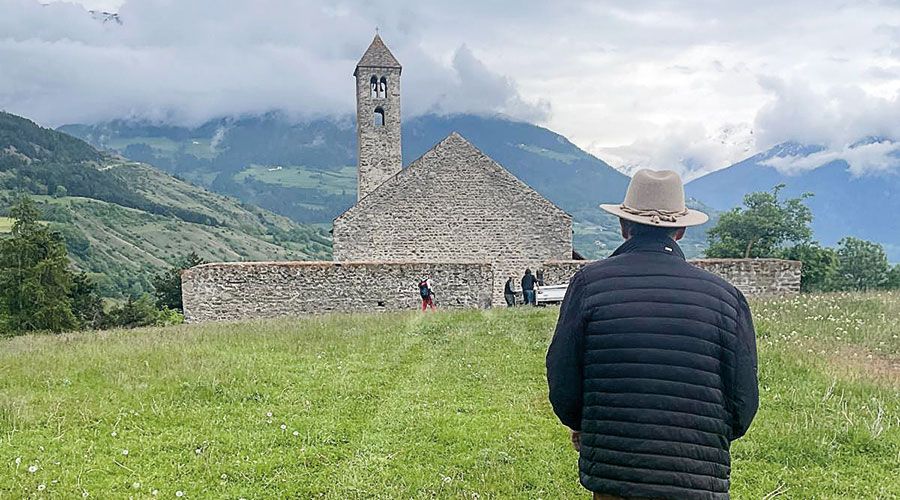 Schenke uns Sonnenschein, damit die Almen grünen und das Vieh fröhlich weidet.“ Auch dieser Satz kommt in dem Segen vor, den der Sekretär des Bischofs und Pfarrer Michael Horrer am 9. August im Kirchlein zu St. Martin in Zerza ausgesprochen hat. Das Schlusslied „Glorwürdige Königin“ wird in der voll besetzten Kirche von der zufällig zusammengewürfelten Kirchengemeinschaft mit unvergleichlicher Inbrunst gesungen. Alle anderen Lieder auch. Dafür sorgen nicht zuletzt der Schlosser Hans und der Sch…