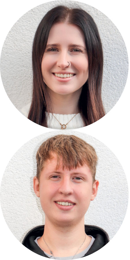 Melanie Zerz, Jg. 1999, arbeitet in der Verwaltung, Planung und Kundenbetreuung, Mirko Zerz, Jg. 2002, als Elektriker auf der Baustelle.