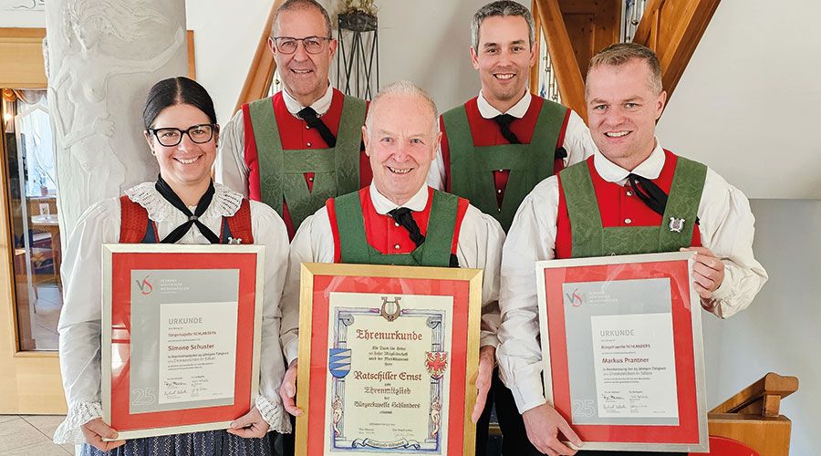Den Festgottesdienst zur Ehre der Hl. Cäcilia am Sonntag, den 23. November 2025 gestalteten der Chor der Pfarrkirche und die Bürgerkapelle Schlanders auch heuer wieder gemeinsam. Beim anschließenden offiziellen Teil der Bürgerkapelle Schlanders im Hotel Maria Theresia gemeinsam mit den Familienangehörigen durfte Obmann Martin Ratschiller unter den Ehrengästen auch Dekan Mathew Kozhuppakalam und die neue Kulturreferentin Kunhilde von Marsoner begrüßen. Nach dem Vorlesen des amüsanten Tätigkeitsb…