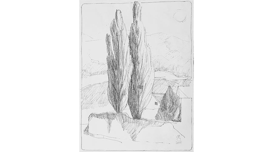 Disagio, Anklage als Stundenbild. Zu den Schäden, die der Faschismus gutmachen wollte, gehört das Programm der Aufforstung mit Pappel-Pyramiden, die in unserer Umgangssprache „Alber“ heißen. Diese „italienischen“ Pappeln wachsen heute zahlreich in den Hainen der Poebene, also in Norditalien. Als schnellwachsende Laubbäume sind sie bei uns als „Mussolini Paam“ bekannt. Gepflanzt wurden sie an wichtigen Stellen der Siedlungen, in Schlanders auch in der Nähe einer wichtigen Straßenkreuzung. Neben…