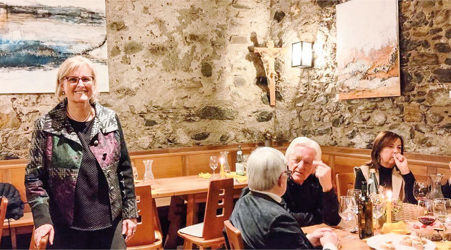 Die Tschenglsburg und die Künstlerin Barbara Fleischmann, luden Mitte November zur Vernissage nach Tschengls. Die Künstlerin malt Acryl auf Leinwände und andere Unterlagen. Sie verwendet dabei verschiedene Materialien und Techniken. Rost, Goldpulver und Kaffe wirken individuell auf die Werke, durch Tapeten fügt sie gekonnt Schriften und kleine Bildelemente ein. Oft übermalt sie Stellen wieder, Barbara liebt es wie Bilder so Schritt für Schritt entstehen. „Jeder kann zeichnen, man kann alles ler…