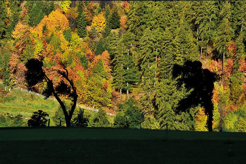 Bei Burgeis. Die Natur wechselt ihre Kleider und die Herbstkollektion ist so kurzlebig und bunt wie keine andere. Foto: Gianni Bodini - www.fotobybodini.it