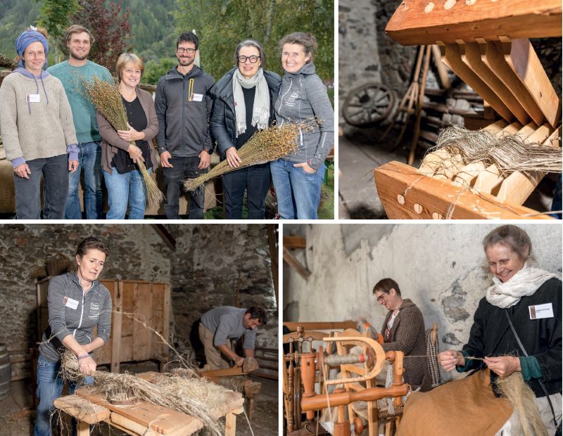 Val Müstair - Die Flachs-Brächete ist ein historischer Brauch, bei dem die gemeinsame Verarbeitung der Flachsernte mit traditionellen Gerätschaften im Mittelpunkt steht.