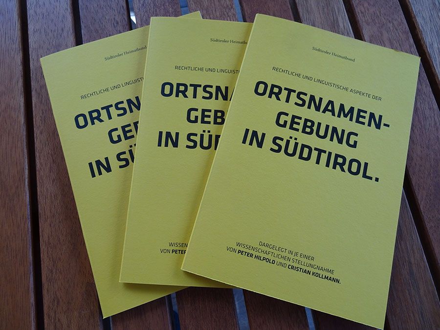 Der SHB hat zur Ortsnamensfrage bei Prof. Dr. Peter Hilpold, Professor für Völkerrecht und Dr. Cristian Kollmann, Sprachwissenschaftler und Toponomastikexperte, je eine wissenschaftliche Stellungnahme eingeholt und diese 2023 veröffentlicht. Sie zeigen Versäumnisse in der Ortsnamensgebung, aber auch Lösungsvorschläge auf wissenschaftlicher Basis auf.