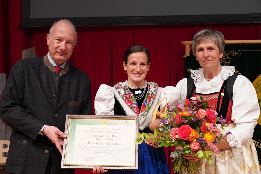 Zum 19. Mal konnte dank der Stiftung Südtiroler Sparkasse die Auszeichnung verliehen werden, der Wanderpokal ging an Gerti Heiss vom Gstraffhof in St. Valentin/Kastelruth. Der Präsident der Stiftung, Stefan Pan, würdigte in seiner Rede die Bäuerinnen als Wegweiserinnen unserer Zeit. „Die neue Bäuerin des Jahres zeigt mit beeindruckender Intensität und Weitblick, wie man mit tief empfundener Naturverbundenheit einen Hof gestalten und weiterentwickeln kann. Ihr persönlicher Weg ist ein starkes Zeichen dafür, wie wertvoll die Arbeit der Bäuerinnen ist.“