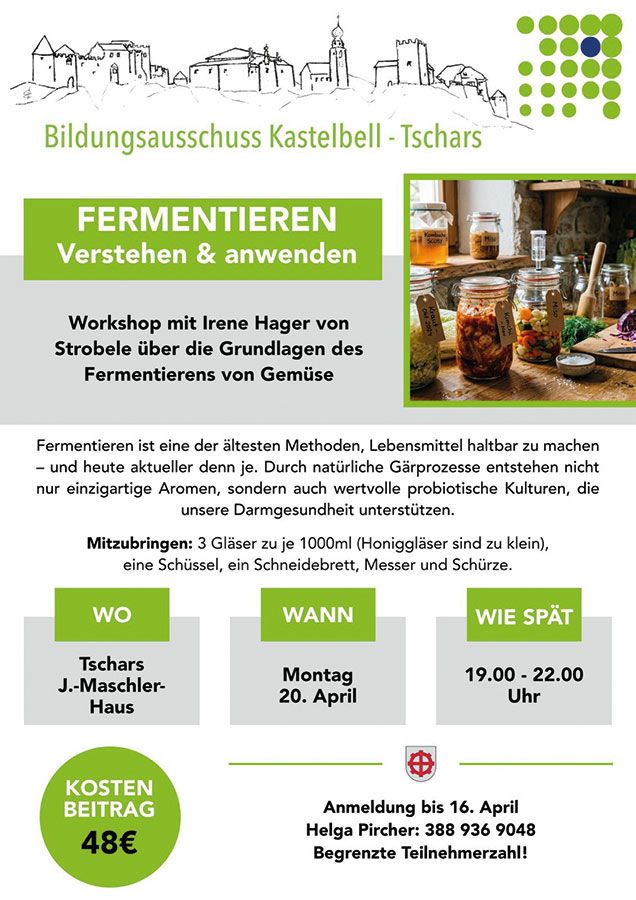 Anmeldung bis 16. April - Helga Pircher: 388 936 9048