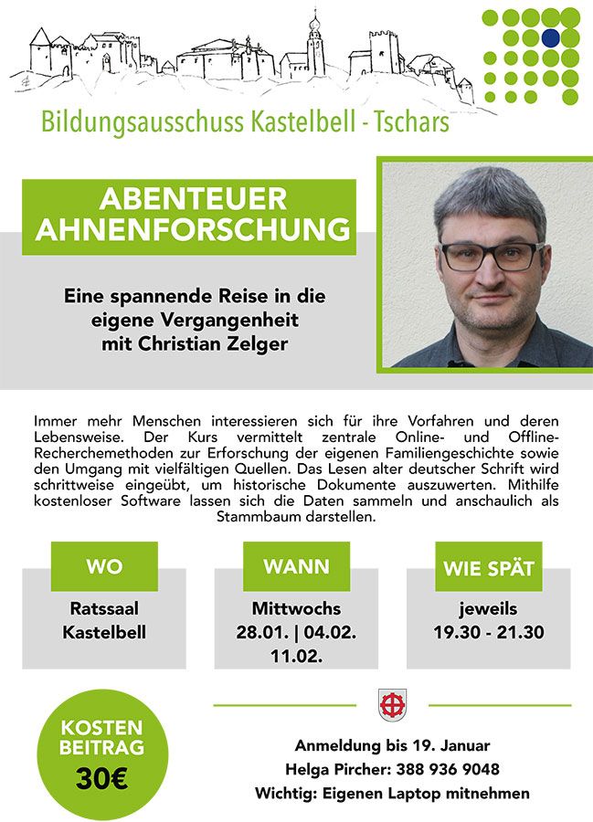 Anmeldung bis 19.01.26, Helga Pircher: 388 936 9048