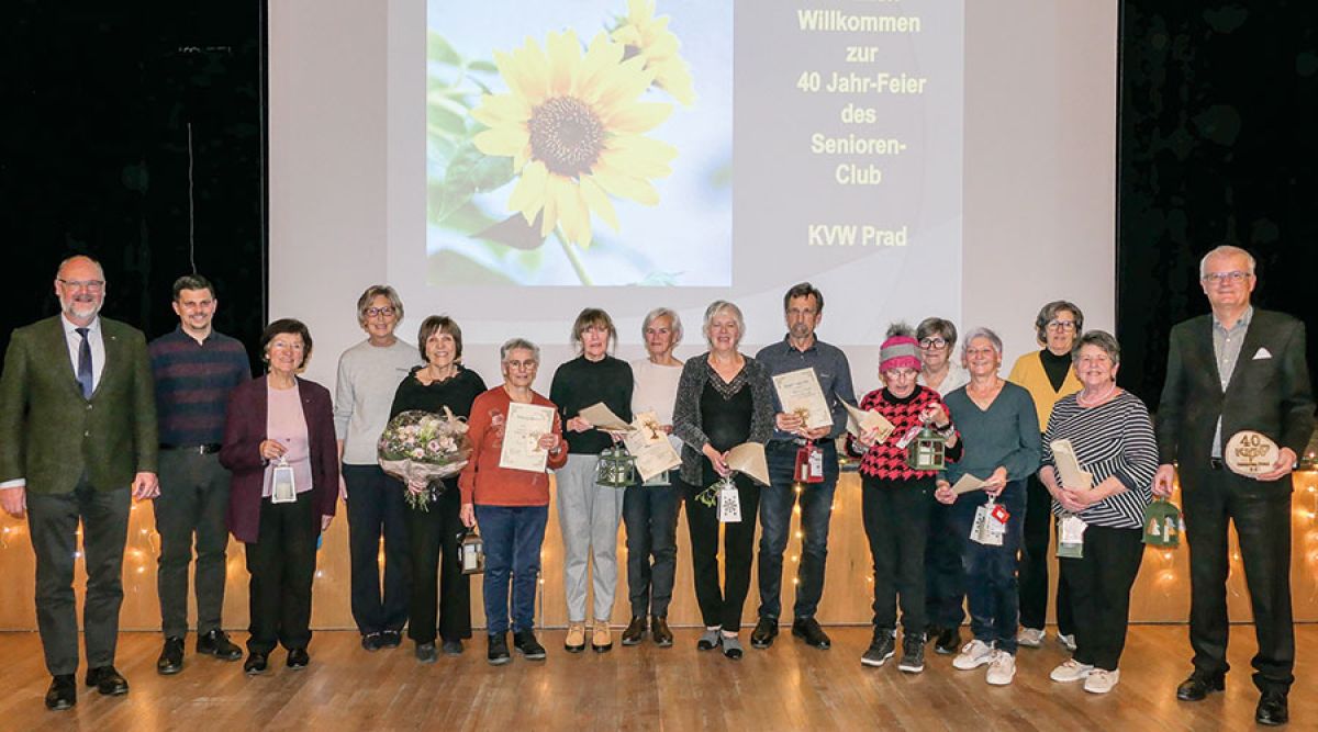 Rosa Stecher Weissenegger, die KVW-Ortsvorsitzende, konnte nicht nur viele Senioren und Seniorinnen, sondern auch viele Ehrengäste begrüßen. Neben BM Rafael Alber, mehrere Ausschussmitglieder, die Alt-BM Georg Stillebacher und Hubert Pinggera, waren auch Werner Steiner, der KVW-Landesvorsitzende, Christian Wenter, der Vorsitzende der KVW-Senioren, Maria Kusstatscher, die langjährige Vorsitzende der KVW-Senioren, KVW-Bezirksvertreter und Vertreter:innen anderer Seniorenclubs ins Nationalparkhaus gekommen. Eröffnet wurde die Jubiläumsfeier mit Musik einer Bläsergruppe und Liedern vom Kirchenchor Prad unter der Leitung von Trudi Theiner. Lebendig und unterhaltsam ging es weiter mit einer Aufführung der Seniorentheatergruppe unter der Leitung von Sieglinde Angerer und mit Tänzen der Seniorentanzgruppe unter der Leitung von Inge Stecher. Anschließend folgte ein Rückblick mit Fotos über die vielfältigen Tätigkeiten des Seniorenclubs, vorgebracht von Friederike Reinstadler Saurer, der Leiterin des Seniorenclubs. Gegründet wurde der KVW-Seniorenclub 1983 von drei Frauen: Adelina Karner, Irene Stecher und Katharina Pinggera. Man traf sich zuerst in der „Wallnöferstube“, bis die Senioren 1993 einen eigenen Raum im Sprengelsitz erhielten. Die Senioren treffen sich wöchentlich in der Seniorenstube. Es wird gefeiert, gespielt, gesungen, getanzt und geturnt. Ausflüge und Fahrten wurden organisiert, ebenso verschiedene Vorträge. Wallfahrten, Törggelefahrten, Fahrten zu den Bregenzer Festspielen standen auf dem Programm, genauso wie Geburtstagsfeiern und Feiern zu Fasching, zu Nikolaus und vor Weihnachten. Werner Steiner erläuterte anschließend die Aufgaben und die vielfältigen Tätigkeiten des KVW. Zum Abschluss wurden als Dank und Anerkennung für langjährige ehrenamtliche Mitarbeit mehrere Personen geehrt: Maria Luise Klotz, Patrizia Reinstadler, Erika Schgaguler, Annemarie Telser, Gisela Tischler, Herta Weiss, Gottfried Theiner, Friederike Reinstadler, Margherita Prieth, Helga Rechenmacher und Rosa Stecher.