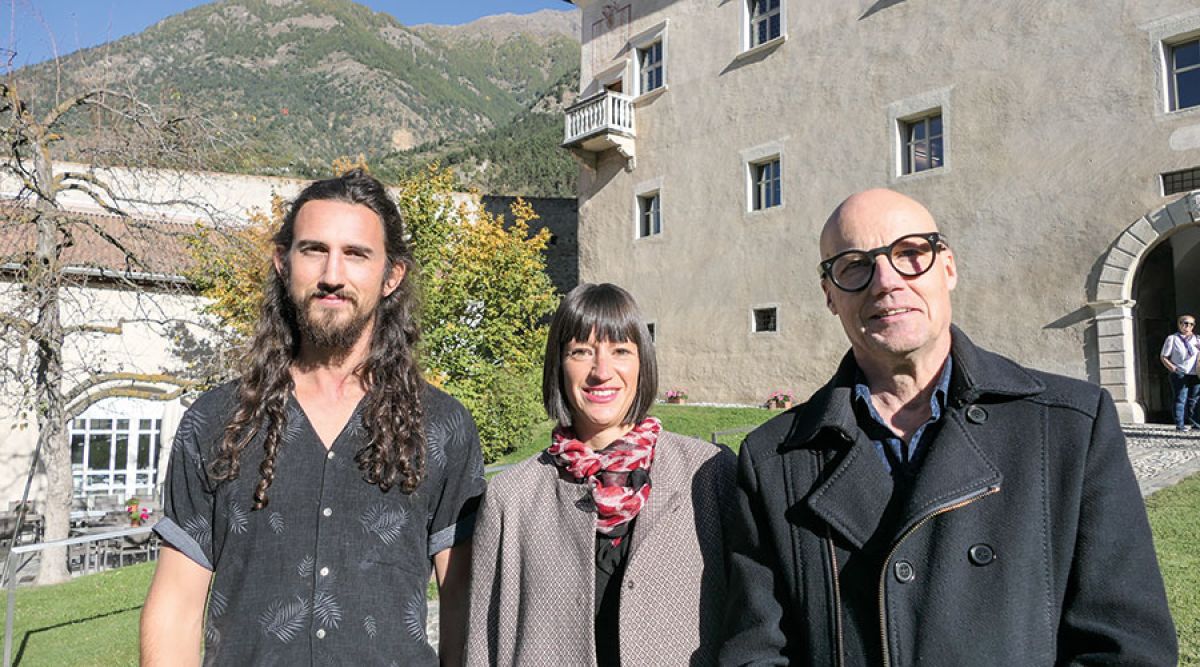 v. l.: Der Pianist Nico Platter, die Bildungsreferentin Maria Raffeiner und der Autor Horst Saller