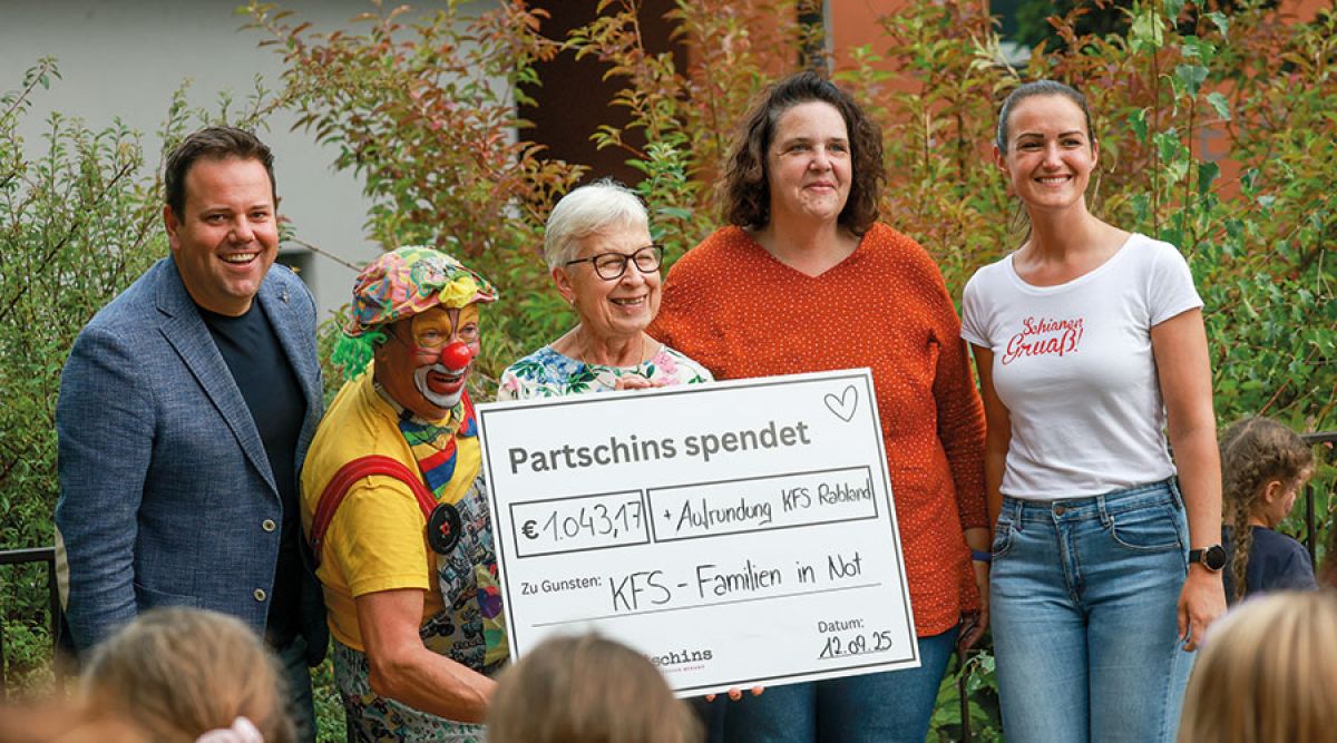 Ergänzt wurde das Fest durch verschiedene Spiele, Bastel- und Kreativangebote, Kinderschmink- und Geschicklichkeitsstationen, sowie weitere lustige Mitmachangebote. Im Rahmen des Kinderfestes überreichten der Tourismusverein Partschins gemeinsam mit dem KFS Rabland einen Scheck an den Katholischen Familienverband Südtirol (KFS). Der Betrag stammt aus den freiwilligen Spenden, die bei den Sommerkonzerten des Tourismusvereins gesammelt wurden. Der KFS Rabland hat den erzielten Spendenbetrag zudem aufgestockt, sodass eine noch höhere Summe für die Familienarbeit zur Verfügung steht.