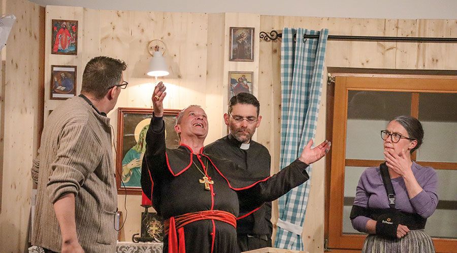 Die Schauspielerinnen und Schauspier des Dorftheaters Schleis sorgen derzeit mit dem Lustspiel „Heiliger Antonius“ für große Erheiterung. Sie spielen beherzt auf und sorgen dafür, dass ihr Spaß am Spiel auf das Publikum überspringt. Dieses dankt ihnen mit Lachen und spontanem Szenenapplaus. Dass Schleiser Ortsgegebenheiten im Stück eingewoben sind, sorgt für eine spezielle Komik, genauso wie „das Fett“, das die „hohe Geistlichkeit“ auf der Bühne abbekommt. Zum Inhalt: Dieser dreht sich um den Streit zwischen den Bewohnern der beiden Dorfteile Schleis-Außerdorf und Schleis-Innerdorf und um die Antonius Kirche, die zur Hälfte den einen und zur Hälfte den anderen gehört. Und es geht um die Statue des Heiligen, die laufend so gedreht wird, dass sie der jeweiligen Gegenseite den Hintern zeigt. Der Versuch den Streit zu schlichten, bringt einen Pfarrer in die Psychiatrie und fordert dessen Nachfolger. Dann mischt auch noch der bischöfliche Ordinariatsdirektor mit. (mds)