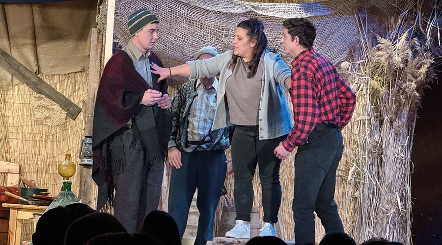 Die Geschichte entwickelt sich soweit, dass die Dorfleute von Schilfdorf gern und viel für das Lesen der Zukunft aus der Bewegung von Regenwürmern bezahlen. Die Regeln für das Orakel sind klar: Bezahlt wird trotzdem, auch wenn der Heilige Wurm in seiner Antwort nicht eindeutig ist. Mittelpunkt ist der junge Hans (Jonathan Stecher) auf der Suche nach seinem vermeintlichen Vater. Schauspieler und Publikum hatten bei der Premiere am vergangenen Samstag, den 31. Jänner eine große Hetz. Der Saal war ausverkauft, die Schauspieler in Spiellaune, das Bühnenbild schaurig schön, alle freiwilligen Helfer auf ihren Posten. Bemerkenswert: Das Publikum war im Schnitt jung und das war wohl vor allem den jungen Schauspieler:innen zu verdanken, die der Theaterbühne Matsch eine gute Zukunft versprechen. (eb)