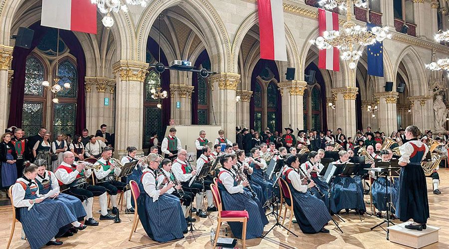 Beim Ballabend - es war der erste der kommenden Wiener Ballsaison - gaben im imposanten Ambiente des Wiener Rathauses erneut Tirol und der Vinschgau mit Volkstanz und Blasmusik den Takt vor. Wie schon im Dom sorgte vor allem die junge Kapellmeisterin der Schludernser Musikkapelle Ruth Längerer für besondere Aufmerksamkeit. Mit ihren erst 18 Jahren führte sie gekonnt den Taktstock. Sie hat die musikalische Leitung der Schludernser Musikkapelle erst im vergangenen November übernommen. Diese Kapelle hat das große Pensum an Auftritten in Wien mit Bravour gemeistert, genauso wie alle anderen Gruppen. Der Ball war Schauplatz für eine Nacht voller Tiroler Charme, lebendiger Traditionen und festlichem Brauchtum. Veranstaltet wurde der Tirolerball vom Tirolerbund in Wien, der seit über 160 Jahren die Förderung von Kontaktpflege und Geselligkeit unter Tirolerinnen und Tirolern in der Bundeshauptstadt unterstützt. Zu den Ehrengästen zählten der Tiroler Landeshauptmann Anton Mattle, Gaudenz Graf Trapp, Landeshauptmann Stellvertreterin Rosmarie Pamer, die Bürgermeisterinnen Verena Tröger aus Laas, Roselinde Gunsch Koch aus Taufers i. M. und Bürgermeister Heiko Hauser von Schluderns. (mds)