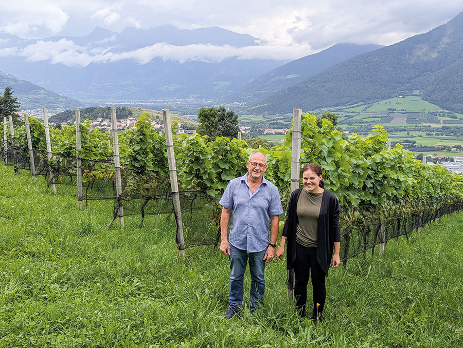 Ursprünglich pflanzte der Prader Landwirt Stefan Wallnöfer in seinem Grundstück oberhalb von Mals Goji Beeren an, doch ihnen machte die Kirschessigfliege den Garaus. Was nun? Bei Frans Van den Dries in Laatsch verkostete er einen guten Weißen mit fruchtigem Bouquet, aus der pilzwiderstandsfähigen Weißweinsorte Solaris gekeltert. Solaris bedeutet zur Sonne gehörig, perfekt für den sonnenverwöhnten Standort im artenreichen Gebiet der Hoache. Zehn Jahre ist es her, dass Stefan das Experiment begonnen und Reben gepflanzt hatte. Da Lage und Bedingungen sowie die Beschaffenheit des Bodens ideal sind, gelang es auf Anhieb. Von den ersten Jahrgängen zeigte sich Eros Teboni abgetan, ein vielfach ausgezeichneter Sommelier. Das spornte an, weshalb der Weinberg erweitert wurde und heute aus drei Etagen in leichter Hanglage besteht. Zunächst waren Stefan und bald auch Tochter Julia mit der Arbeit im Weinberg eingedeckt und die Weinbereitung delegierten sie an Hartmann Donà.
