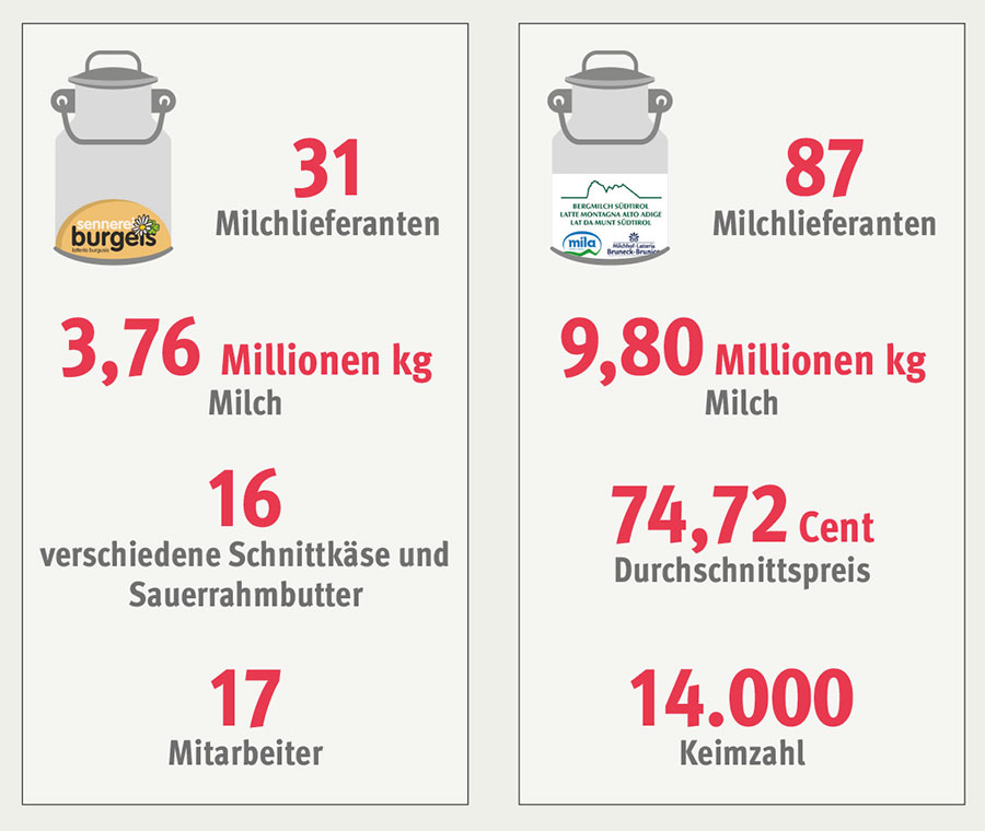 der Gemeinde Mals hat jeder seinen Platz. Die Pestiziddiskussion ist gemeistert. Man ist dabei die Landwirtschaft individuell weiterzuentwickeln. Die Viehwirtschaft spielt hier traditionell eine große Rolle. 31 Bauern liefern ihre Milch an die Sennerei Burgeis. Die Sennerei Burgeis ist ein einzigartiger Betrieb und „hat 2025 insgesamt 3.757.615 Kilogramm Milch verarbeitet“, erklärt Geschäftsführer Stefan Baldauf. 31 Mitglieder liefern ihre Milch zur Sennerei Burgeis. Diese wiederum veredelt die Milch zu 16 verschiedene Produkte. Zudem ist die Sennerei ein wichtiger Arbeitgeber: 17 Mitarbeiter sind dort beschäftigt.