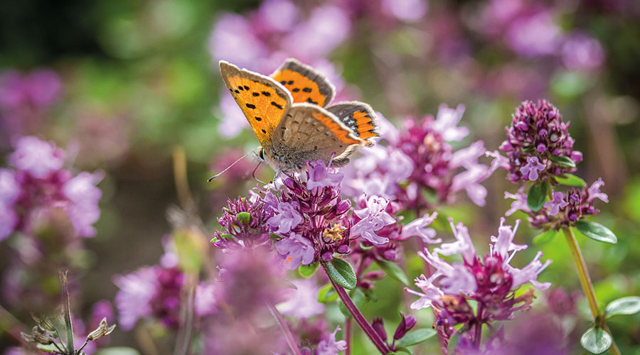 Nicht jede bienenfreundliche Pflanze ist auch für Schmetterlinge attraktiv und umgekehrt. Denn viele der bunten Falter sind aufgrund ihrer Rüssellänge an ganz bestimmte Blütenarten angepasst. Geeignete Nektarpflanzen sind beispielsweise Bartblumen, Blaukissen, Fetthenne, Lavendel, Flammenblumen, Prachtscharte, Steinkraut und Thymian. Ein derart vielseitiges Buffet lockt sicherlich viele bunte Besucher in den Garten oder auf den Balkon.