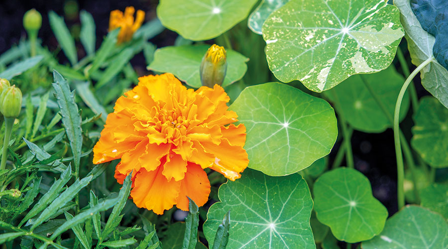 Unterschiedliche Arten im Garten können das gegenseitige Wachstum fördern, sich untereinander mit Nährstoffen versorgen, Bestäuber anlocken und sogar Schädlinge durch ihren Duft verschrecken. Ein paar Beispiele: Lauch vertreibt Möhrenfliegen, während Möhren Zwiebelfliegen in die Flucht schlagen. Buschbohnen und Bohnenkraut, gemeinsam angepflanzt, geben der schwarzen Bohnenlaus keine Chance. Kräuter wie Basilikum oder Schnittlauch rund um die Erdbeeren gepflanzt, fördern das Wachstum und schützen vor Pilzsporen; Lauch, Knoblauch und Zwiebeln als Nachbarn halten Schnecken von den süßen Früchten fern. Tagetes, die man neben Tomaten oder Erdbeeren setzt, können durch ihren starken Duft nicht nur die weiße Fliege vertreiben, sondern auch Nematoden im Boden beseitigen. Nematoden sind winzige Fadenwürmer, die an den Wurzeln der Pflanzen saugen und diese dadurch schädigen. Die Tagetes schafft es, die Nematoden erst anzulocken und dann quasi zu vergiften.