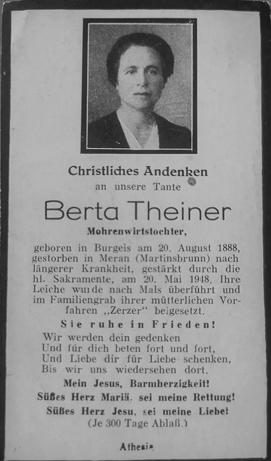 Patin: Berta Theiner, ledig in Burgeis.