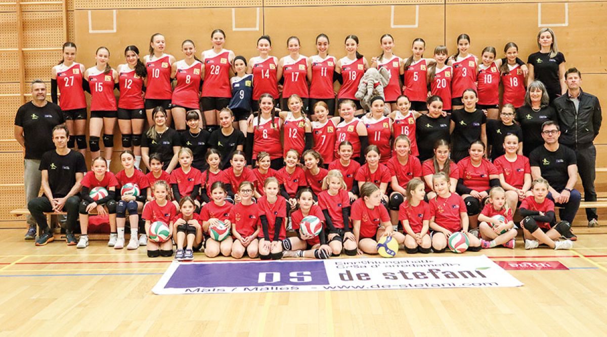 Die Begegnung mit den 56 begeisterten Volleyballspielerinnen des ASV Mals beim Fototermin in der Sporthalle des Oberschulzentrums Claudia von Medici war kürzlich beeindruckend. Dabei wurde bewusst, dass die Trainer und Trainerinnen Karin Thanei (Koordinatorin), Petra Belkova, Dimitri Todeschi, Armin Rauch und Michele Schiraldi Großartiges leisten, indem sie sich wöchentlich um die acht Mannschaften (2xU10,4xU12,1xU13 + 1xU15) kümmern. Anlass für den Fototermin war die Übergabe der T-Shirts, gesponsert vom Markus De Stefani, sowie der Sporttaschen, Rucksäcke und Mützen an die Athletinnen. Die Volleyballmädchen sind motiviert in die Saison 2025/26 gestartet und konnten sich bei Turnieren bereits über einige Siege freuen. Doch an erster Stelle stehen Bewegung und Spaß mit dem Ball. Die Mädchen in der Mannschaft U15 befinden sich in der Vorrunde derzeit auf Tabellenplatz eins. Diese Mannschaft spielt in der Vorrunde am 28. November 2025 in Klausen gegen Volley Klausen. Das letzte Heimspiel in diesem Jahr absolvieren die Mädchen in der U15 gegen Neugries Volley am 20. Dezember um 15.00 Uhr in der Halle des Oberschulzentrums in Mals. Zuschauerinnen und Zuschauer sind herzlich willkommen. (mds)