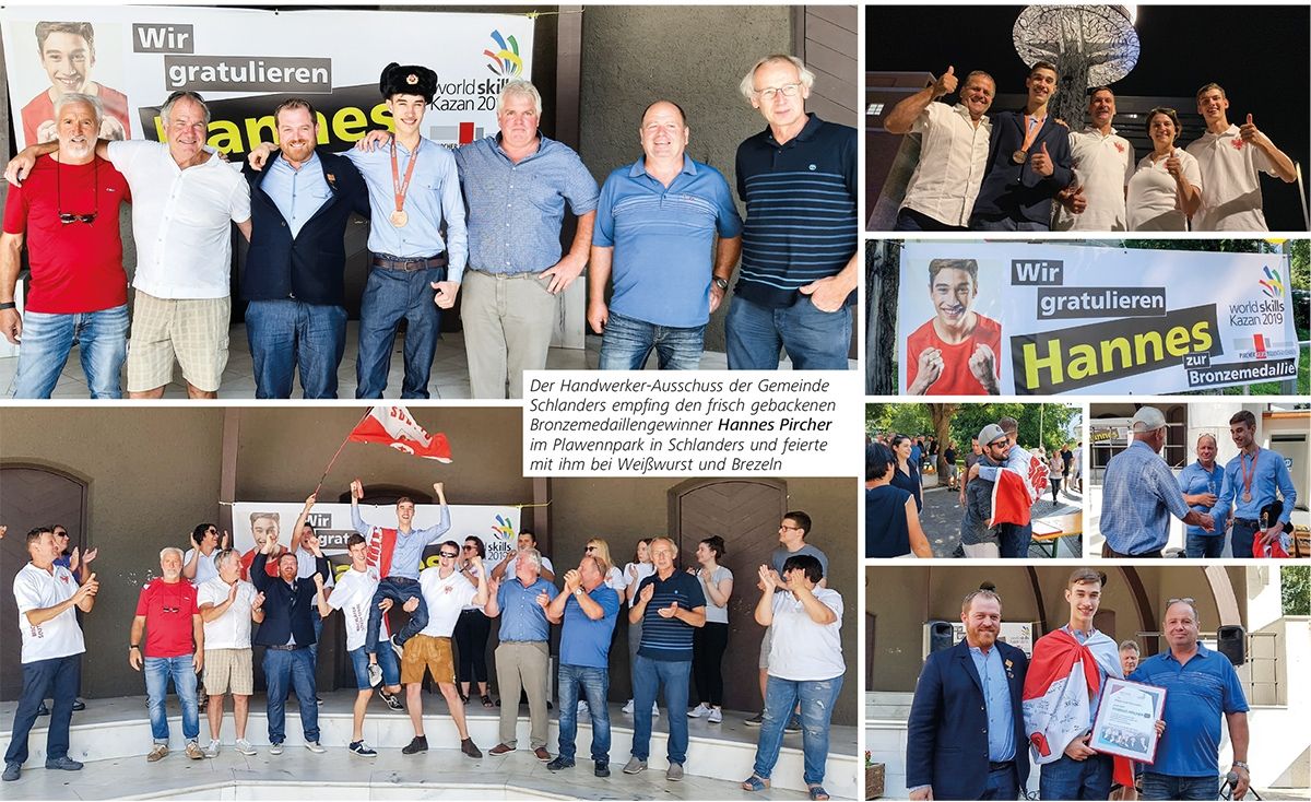 Mit einer Uschanka, einer russischen Kosakenmütze kam Hannes Pircher zum Empfang in Schlanders. Der Ausschuss der Schlanderser Handwerker bereitete dem frisch gebackenen Bronzemedaillen-Gewinner der Berufs-WM in Russland am letzen Augusttag ein Willkommensfest im Plawennpark. Versammelt hatten sich dort viele Vertreter aus Wirtschaft und Politik, alle, die stolz auf die hervorragende Leistung des jungen Maurers sind: die Eltern, der Tutor und Fachlehrer an der Landesberufsschule Schlanders Jose…