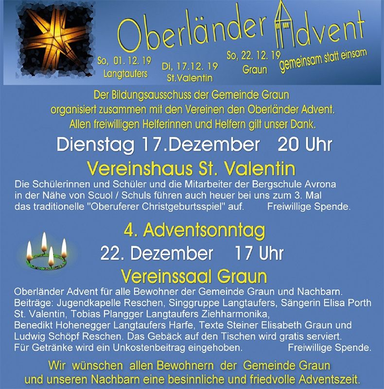 Vinschger Weihnachtslicht 2019 - Ihre Spende ist Licht für andere!
