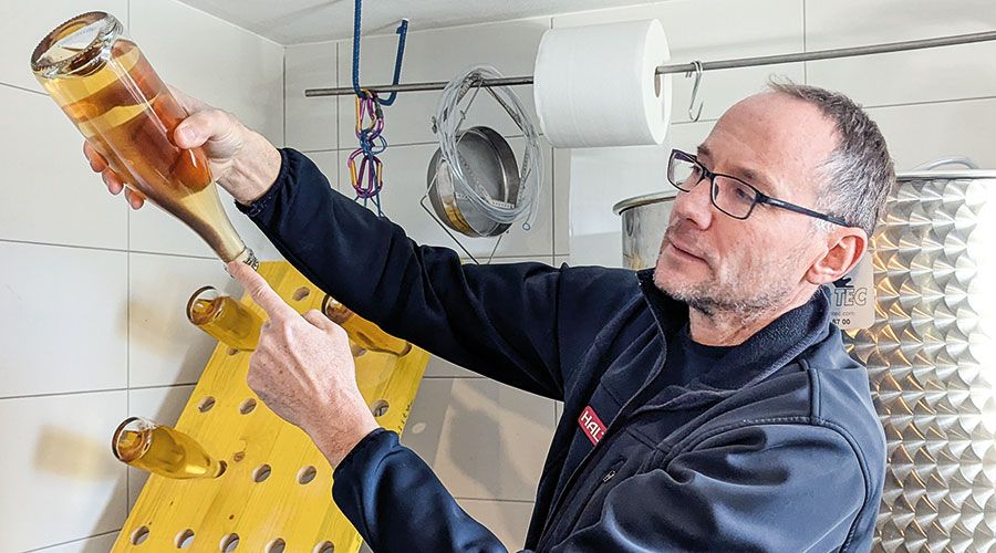 Ende Jänner taut es in den Gassen von Partschins, die Dachrinnen gluckern. Noch reicht die Wintersonne nicht aus, um die Bienen zum Ausflug zu locken, doch lange wird es nicht mehr dauern. In einem Einfamilienhaus im Sonnenbergweg führt Bert Innerhofer durch seine Kellerräumlichkeiten, in denen Honig verarbeitet und zum Honigfruchtschaumwein HoneyGourMet weiterentwickelt wird. Dieses Projekt betreibt Innerhofer im Nebenerwerb. Noch reicht der Platz im Keller, doch sollte sich die Produktion ver…