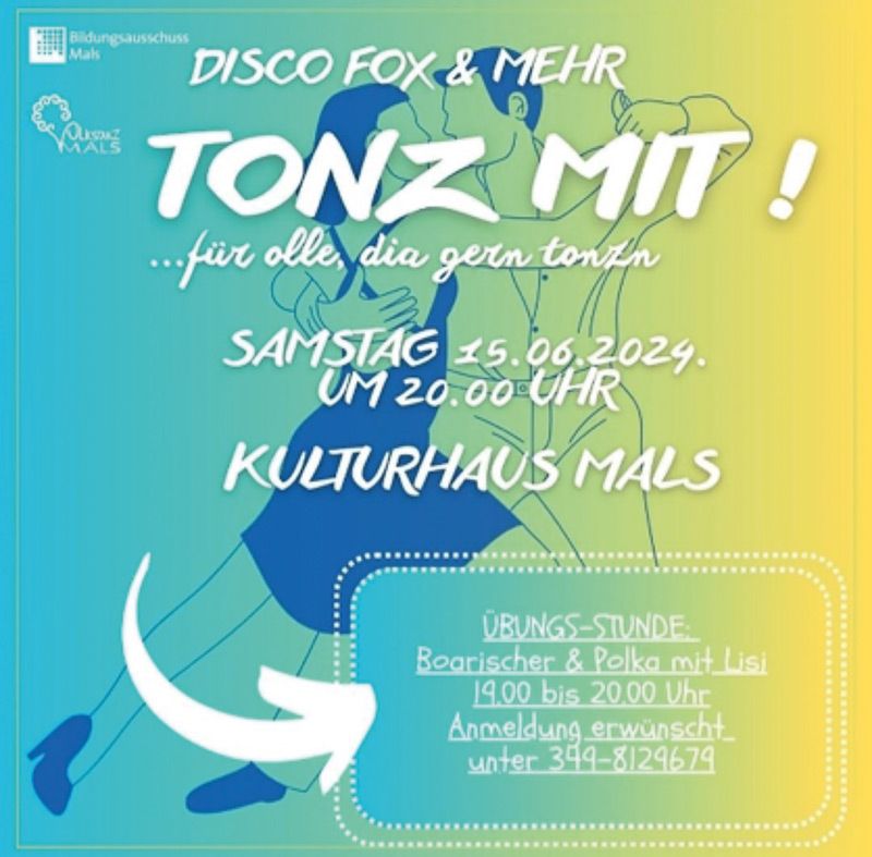 TONZ MIT!-Abende bereits zum 5. Mal immer mehr Begeisterte aller Altersgruppen in den Kultursaal von Mals, um bei „Discofox & mehr“ ein paar gemütliche Stunden zu verbringen.
