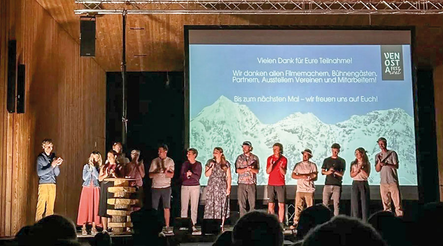Zu einem der Höhepunkte zählte am Freitag, 8. August das Mountainstory Bergfilmfestival mit prominenten Filmemachern und Persönlichkeiten aus der alpinen Szene. Die Gäste sahen die faszinierende Welt der Berge durch die Linse talentierter Filmemacher. Die Film-Highlights waren „Meru – The Ascent of the Goldfish“ von Daniel Hug (@terragraphy) mit den Alpinisten @simongietl_alpinist, @rogerschaeli_alpinist und @mathieumaynadier – ein epischer Einblick in die Welt des Alpinismus und der Expeditionen Blue Sky Thinking“ von @andrecosta.co mit @martin_sieberer und Hannes Hohenwarter (@fu_zi) – ein energiegeladener Mix aus Biken, Paragliding und Klettern.„Dropping Molly“ von Cedar Wright und Molly Mitchell – der Kampf mit der Tradroute Crank it 5.13 c und Mollys inneren Konflikten „Dare to trust“ von Janina Weig und David Ferk (Drohne Mario Kaeppeli) – ein atemberaubender Einblick in die Bikepacking- und Skitour von Garmisch-Partenkirchen zum Piz Bernina. Dazu kamen zwei Produktionen aus dem Vinschgau „Schattenjäger“ von @philipp_egger_photography – beeindruckende Natur- und Wildlife-Aufnahmen. „Nando – Lebensgeist im Eis“ von Michael Tscholl (@joe_fahlz) und @claraschoenthaler – ein bewegendes Porträt des Eiskletterers und Alpinisten. Moderiert wurde die Veranstaltung vom Alpinisten Simon Messner.