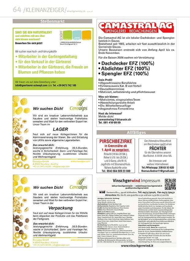 Ausgaben Vinschgerwind