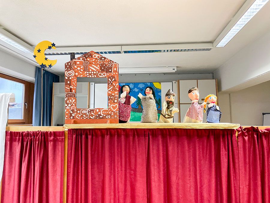 Fächerübergreifender Unterricht einmal anders: Puppentheater am Sozialwissenschaftlichen Gymnasium (SOGYM) des Oberschulzentrums Mals. Die Schülerinnen und Schüler der 3 A und B des SOGYM führen „Hänsel und Gretel“ für die Kindergartenkinder der näheren Umgebung auf.