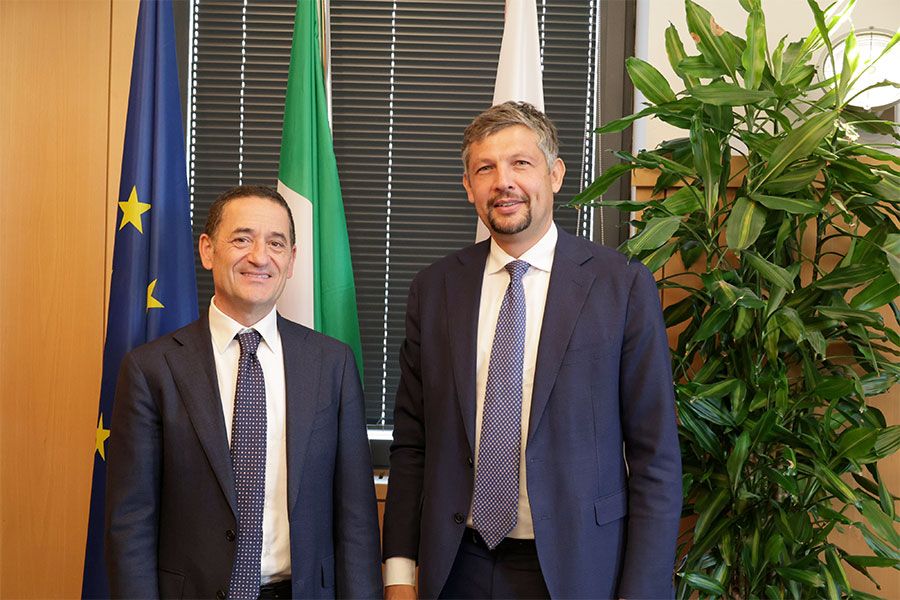 Mobilitätslandesrat Daniel Alfreider (rechts im Bild) mit Umberto Lebruto, dem italienischen Vorstand der Brennerbasistunnel-Gesellschaft. (Foto: LPA/Ressort für Infrastrukturen und Mobilität)