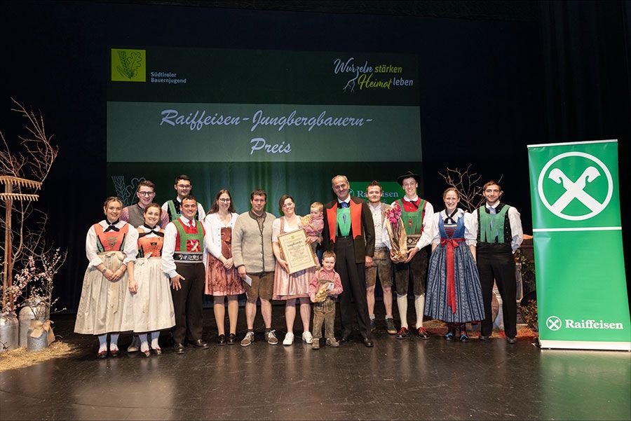 Ein Höhepunkt der Mitgliederversammlung war die Vergabe des mit 11.000 Euro dotierten Raiffeisen-Jungbergbauernpreises. Ausgezeichnet wurde Alexandra Tröger mit ihrer Familie vom Aigenhof am Schlanderser Nördersberg. In der Laudatio wurde die Familie als Vorbild für eine vielseitig geführte Berglandwirtschaft beschrieben. Mit großem Einsatz, generationenübergreifendem Zusammenhalt und viel Herzblut bewirtschafte sie ihren Hof und schaffe damit eine starke Grundlage für die Zukunft. Auch der Wettbewerb „GE®MEINSAM erhalten“ rückte gelebte Verantwortung für Südtirol in den Mittelpunkt. Grundlage dafür war eine Erbschaft, die seit 2021 Projekte zugunsten von Bergbauern, Brauchtum und deutscher Sprache förderte. Im Rahmen der Mitgliederversammlung wurde das Projekt „Stegmühle in St. Pankraz“ vorgestellt und ausgezeichnet. Eine Interessentschaft aus sieben Bergbauernhöfen hatte sich zum Ziel gesetzt, die historische Mühle wieder aufzurichten und damit bäuerliches Eigentum, traditionelle Bauernarbeit und kulturelles Wissen zu bewahren.