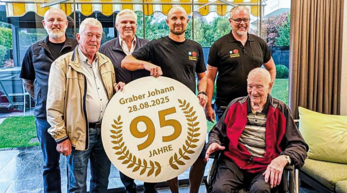 Hans Graber feierte am 28. August 2025 seinen 95. Geburtshaus. Die Schützenkompanie Schlanders hatte dem Hans zu Hause eine Freude bereitet und ihm überrascht.