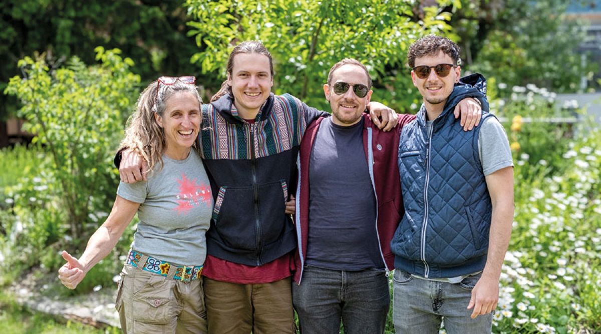 v.l.: Brigitta Villaronga, Damian Eberhöfer, Dominik Pazeller und Marco Telfser sind das Team hinter dem Podcast.