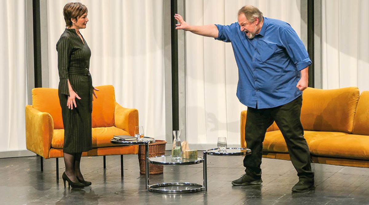 Jemand ist verzweifelt. Er will nicht mehr, er kann nicht mehr. Die geheimnisvolle Person, die nur den Anfangsbuchstaben des Namens nennt, hat nur eine Stunde Zeit. Ist es ein Verrückter, ein Künstler oder eine bekannte Person? Ela, eine Psychologin, nimmt sich Zeit und will ihn gleich wieder loswerden. Er hat keine Mutter und keine Geschwister und sagt er sei Gott. Sie glaubt nicht an Gott und ist gleichzeitig irritiert als er aus ihrer Kindheit und über eine Existenzkrise aus ihrem Leben erzählt. Sie sitzen nebeneinander, stehen auf und gehen herum. Ela, gespielt von Katharina Stemberger, geht zurück bis zur Entstehung der Welt. Wolf Bachofner spielt Gott im Sprechtheater „Oh mein Gott“ von Anat Gov, einer Autorin aus Israel. Er will alles beenden und sucht doch Hilfe bei einer Psychologin und schlüpft ab und zu in die Rolle des Therapeuten. Es ist eine unterhaltsame Komödie mit viel Wortwitz, intelligenten Dialogen voller Überraschungen, aber auch mit tiefen philosophischen und theologischen Fragen. Alles war gut als Gott in fünf Tagen die Erde, die ganzen Pflanzen und Tiere erschuf. Wozu erschuf er am 6. Tag den Menschen? Wollte er einen Freund oder nur einen Gärtner, der die Pflanzen bewässert? Wollte er von den Menschen geliebt und bewundert werden oder sollten sie ihn fürchten? Hat Gott Krankheiten, Kriege und Umweltkatastrophen in die Welt gesetzt, damit die Menschen ihn um Hilfe bitte? Und warum musste Kain seinen Bruder erschlagen? Warum wurde durch die Sintflut nicht gleich alles vernichtet? Wozu die Rettung durch die Arche Noah? Und was soll die Geschichte von Hiob, diesen frommen und gottesfürchtigen Mann, der alles verloren hat? Ela stellte Gott diese Fragen und meinte, dass er nicht tot, sondern nur krank ist. Er hat seine Allmacht verloren, sich zurückgezogen und der Welt seinen Lauf gelassen. Aber in dem Moment, wo er Schwächen zeigt, ist er fähig zu lieben und kann Mitgefühl zeigen. Kann das die Welt retten und auch die Rettung für die Menschen sein? (hzg)