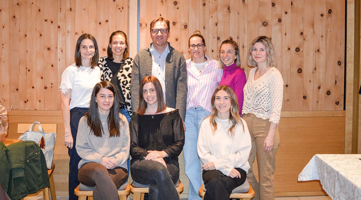 h. v. l. Nadine Alber, Manuela Eberhöfer, Ivan Runggatscher, Heike Fleischmann, Angelika Alber und Lisa Maria Kaserer zusammenmit den drei neue Ausschussmitglieder Eva Gluderer, Verena Privora Verena, Patricia Rosa Pirhofer