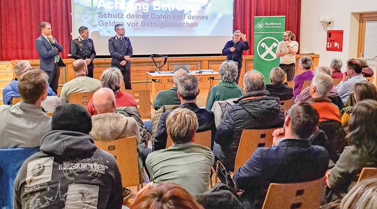 Abschließend erklärte der Direktor der Raiffeisenkasse Obervinschgau, Markus Moriggl, dass dieser Abend für alle, egal ob jung oder alt, wichtig ist, denn präventives Wissen schützt und durch aufgeklärtes, besonnenes und kluges Verhalten kann man als Bankkunde den Betrügern einen Schritt voraus sein und bedankte sich bei den Referenten für die interessanten Ausführungen. Zudem wurden die Besucher hingewiesen, dass nützliche Informationen zum Thema Betrugsfälle und Vorbeugung auf der Homepage der Raiffeisenkasse unter www.raiffeisen.it abgefragt werden können